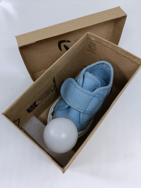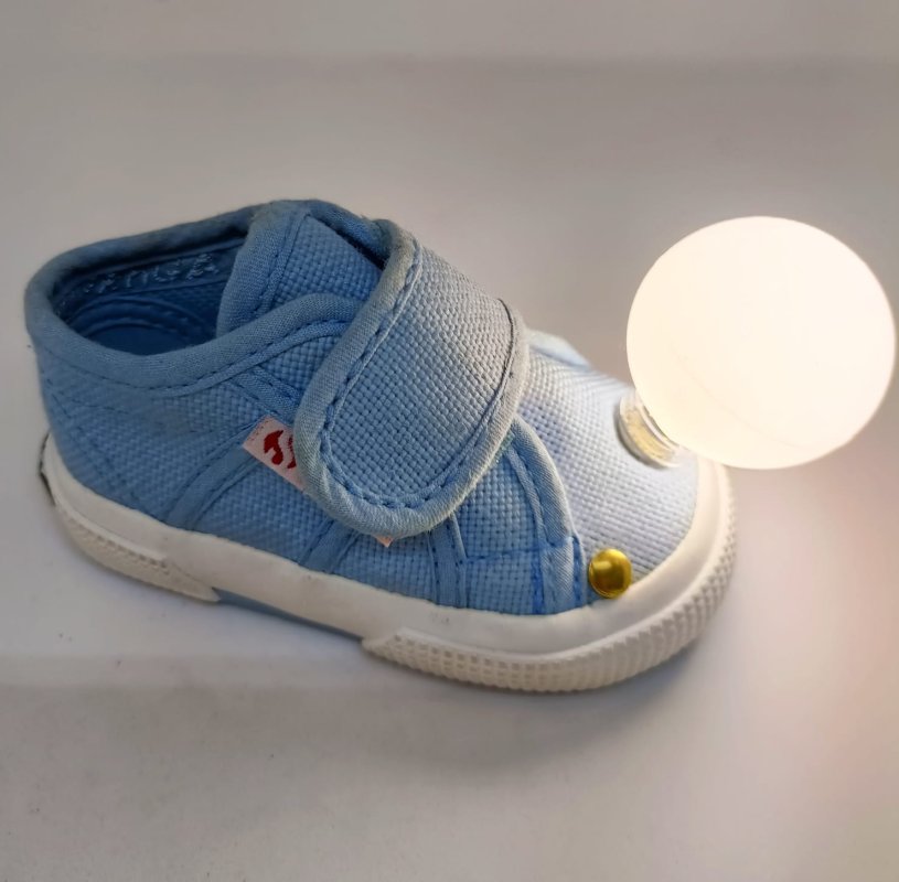 Lampada realizzata con una scarpa spaiata, taglia 18 mesi.